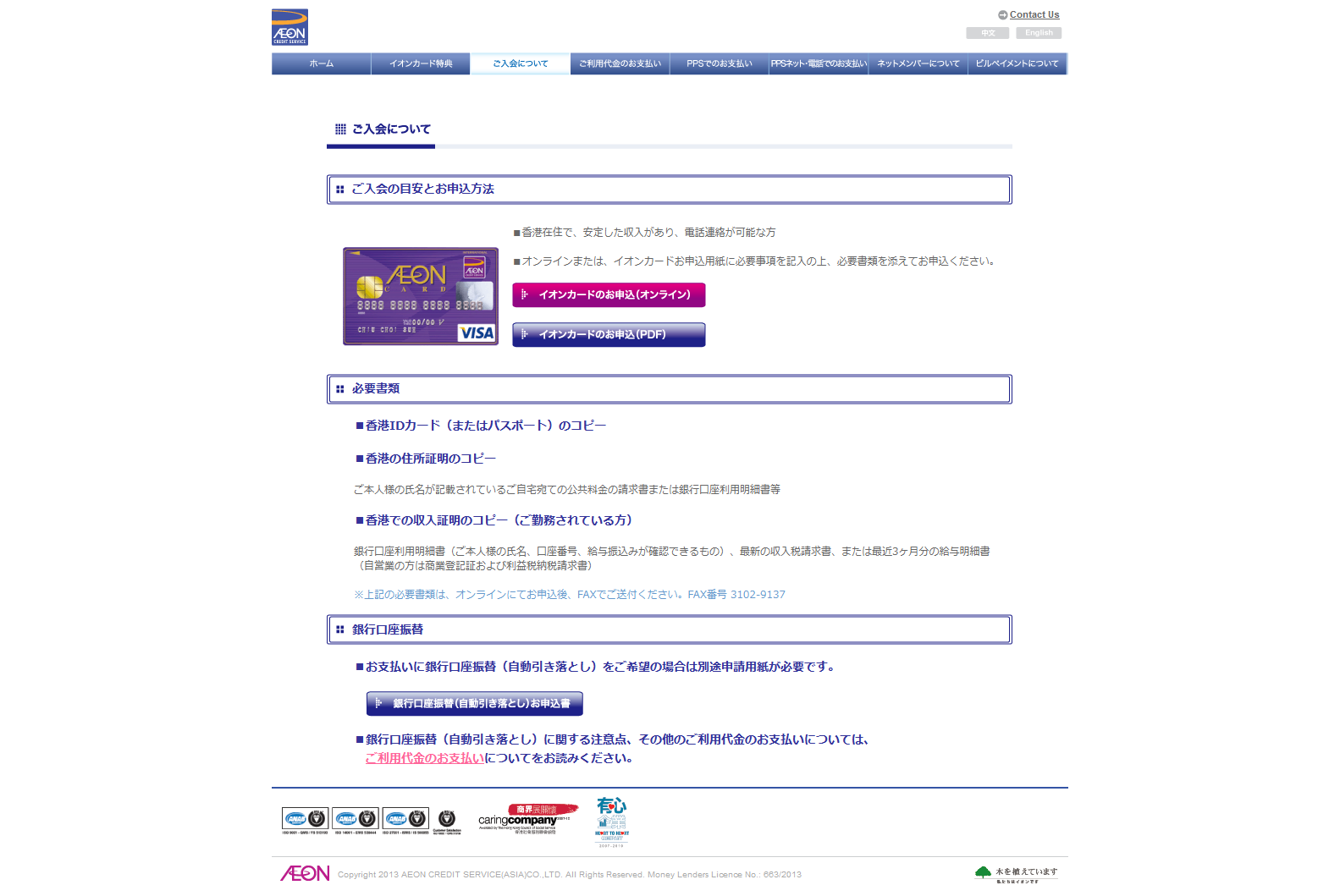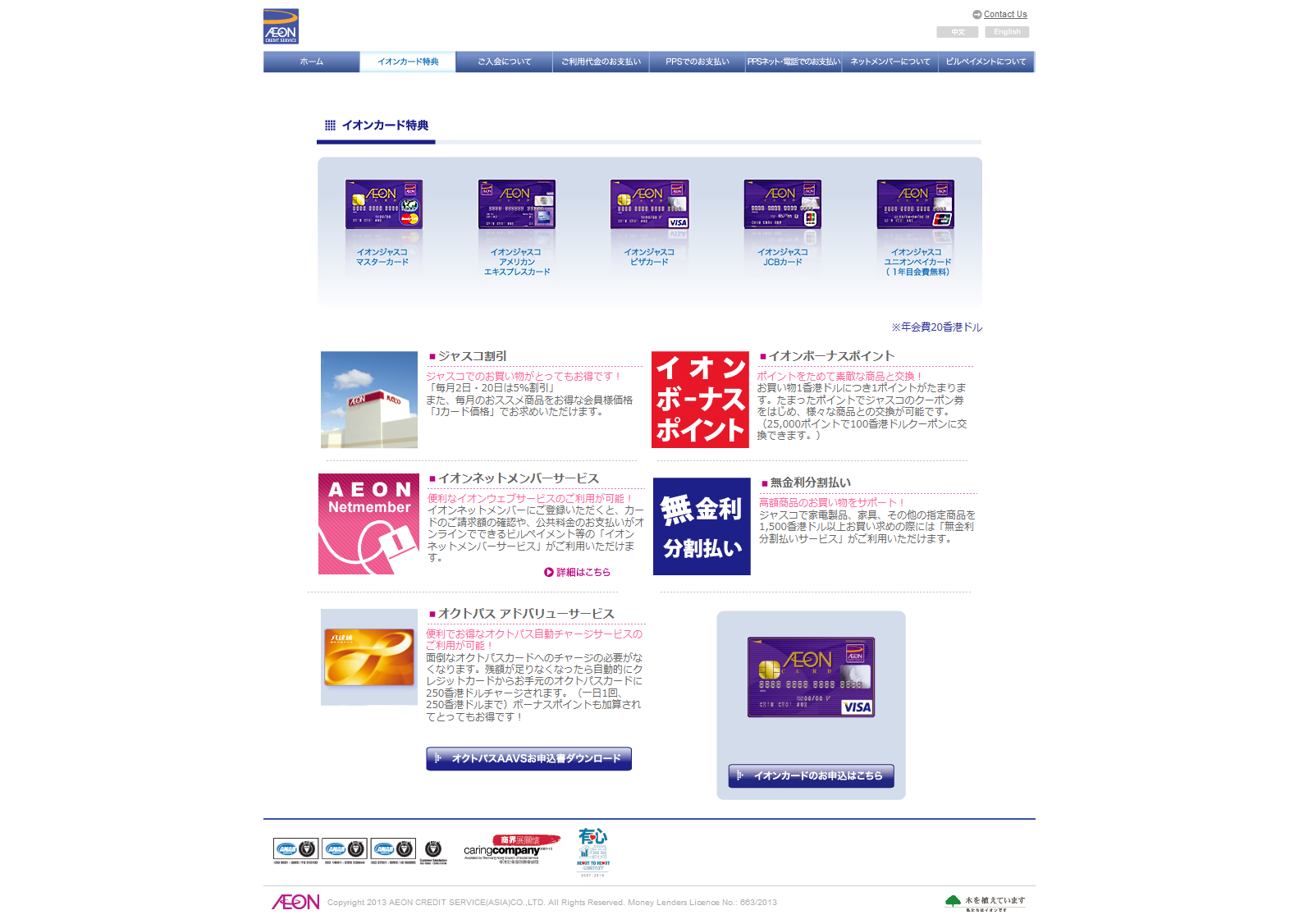 We designed and produced the website of Hong Kong AEON Credit Services Asia (Japanese version).