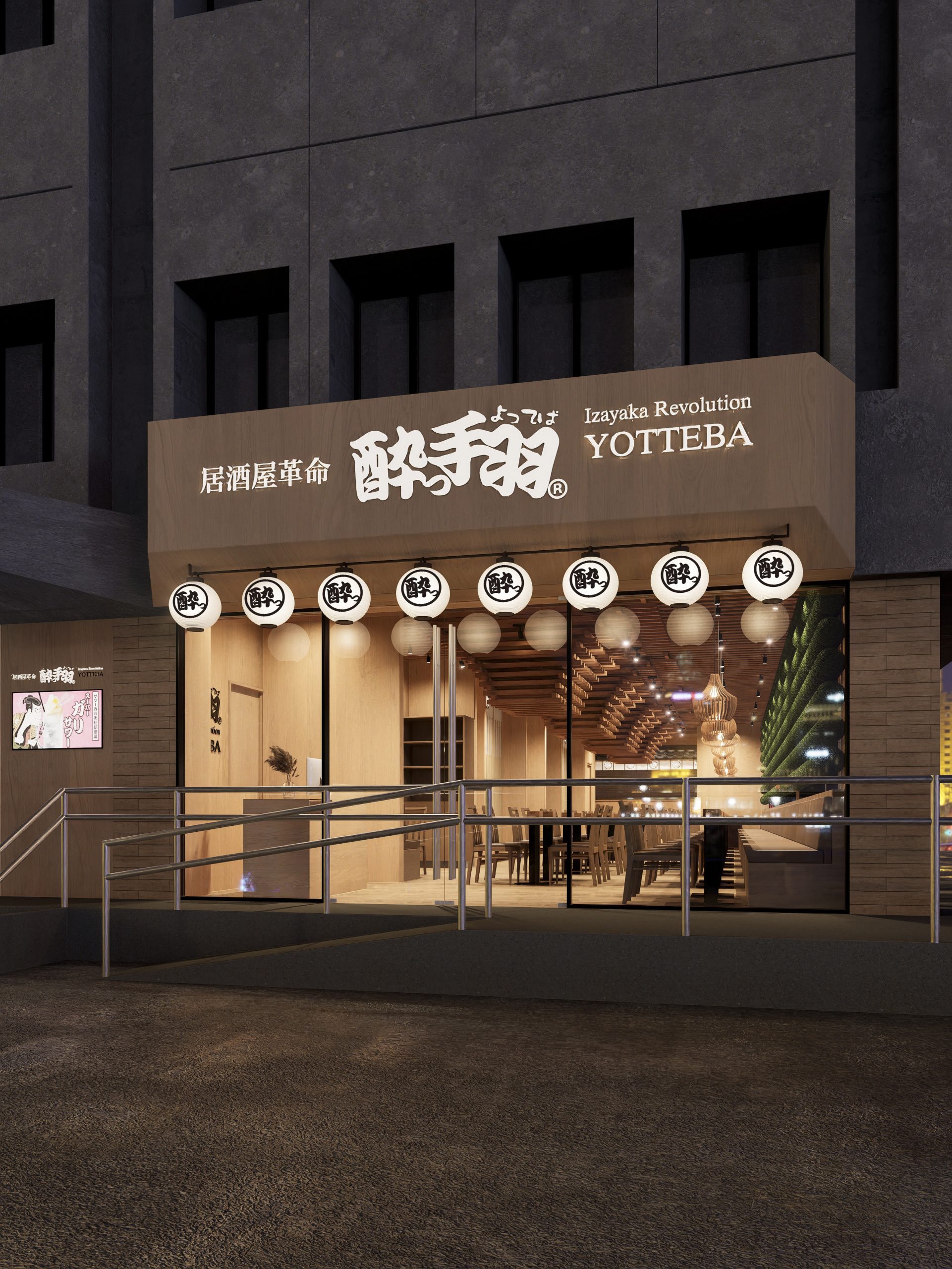 We were in charge of the interior design and supervision of Izakaya Revolution Yotteba.